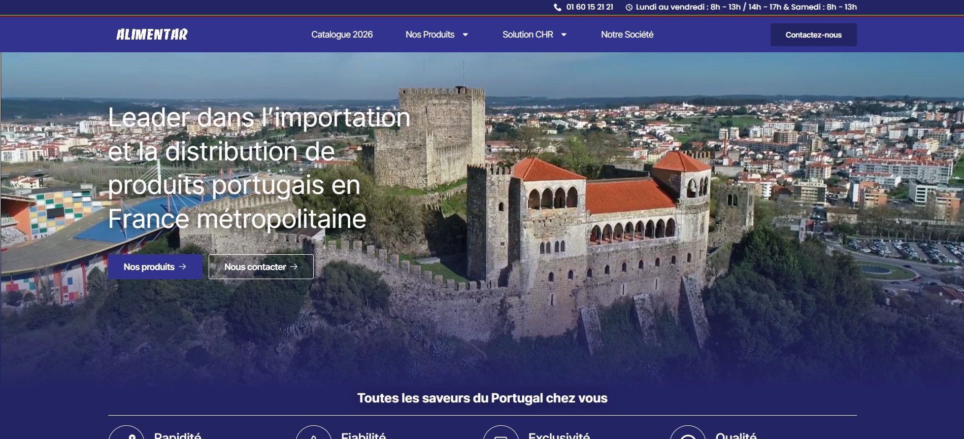 Alimentar est un grossiste spécialisé dans l’importation et la distribution de produits alimentaires portugais en France. Avec plus de 40 ans d’expérience, l’entreprise propose une large sélection de produits portugais authentiques à destination des professionnels, notamment restaurants, épiceries et commerces spécialisés. Son site internet, devenu ancien, nécessitait une modernisation afin de mieux refléter son positionnement et son expertise.